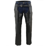 The Free Spirit XRC  Motorcycle Leather Chaps are made for the rider who craves both comfort and durability on every journey. Crafted from soft milled cowhide 1.3 – 1.4mm Leather, these chaps provide the perfect balance of protection and flexibility. Designed with a stretchable inner thigh area, they offer an unrestricted riding position, ensuring that you can ride with ease and comfort.