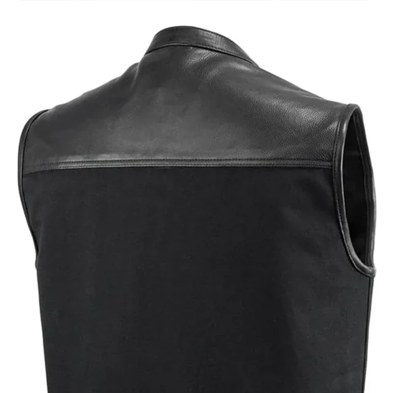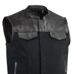- Club style vest with rolled collar, covered snaps, and hidden zipper