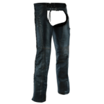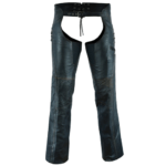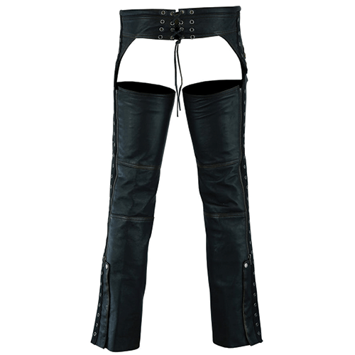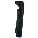 The F-1 Women’s Motorcycle Leather Chaps are made of soft, lightweight, drum-dyed, distressed bare lambskin 0.11 – 1.00 mm, ensuring both style and endurance. These chaps have grommet details and lacing accents, making them sleek and edgy.Â