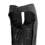 The Sissy are a fun, feminine fit chaps that look fabulous. These chaps are a lower rise with a front belt and rivets. Lace up adjustments on the thigh help you adjust the fit just to you. These are fully lined for comfort, and to help keep you warm and protected on motorcycle rides!