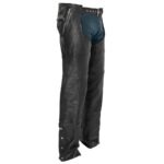 The Wind Walker chaps are a unisex fit in heavy duty Diamond Naked Cowhide. Removable Gator Skin liner helps keep you warm on the coldest of rides. Stretch panels and back lacing allow comfort while riding, along with pockets for everything you need to keep handy. And they’re easy to roll up and put in your saddlebag to keep handy for when the temps drop!